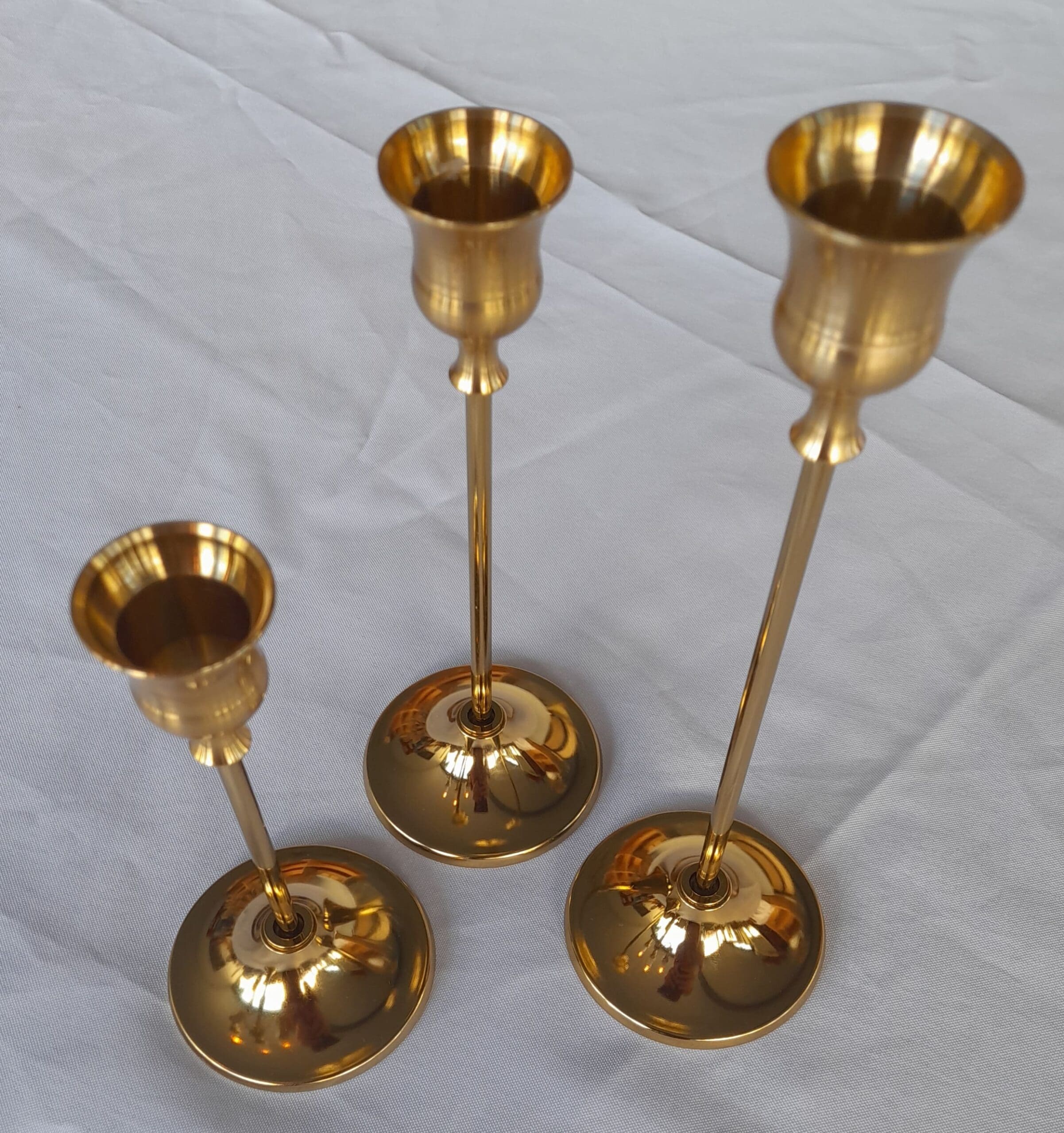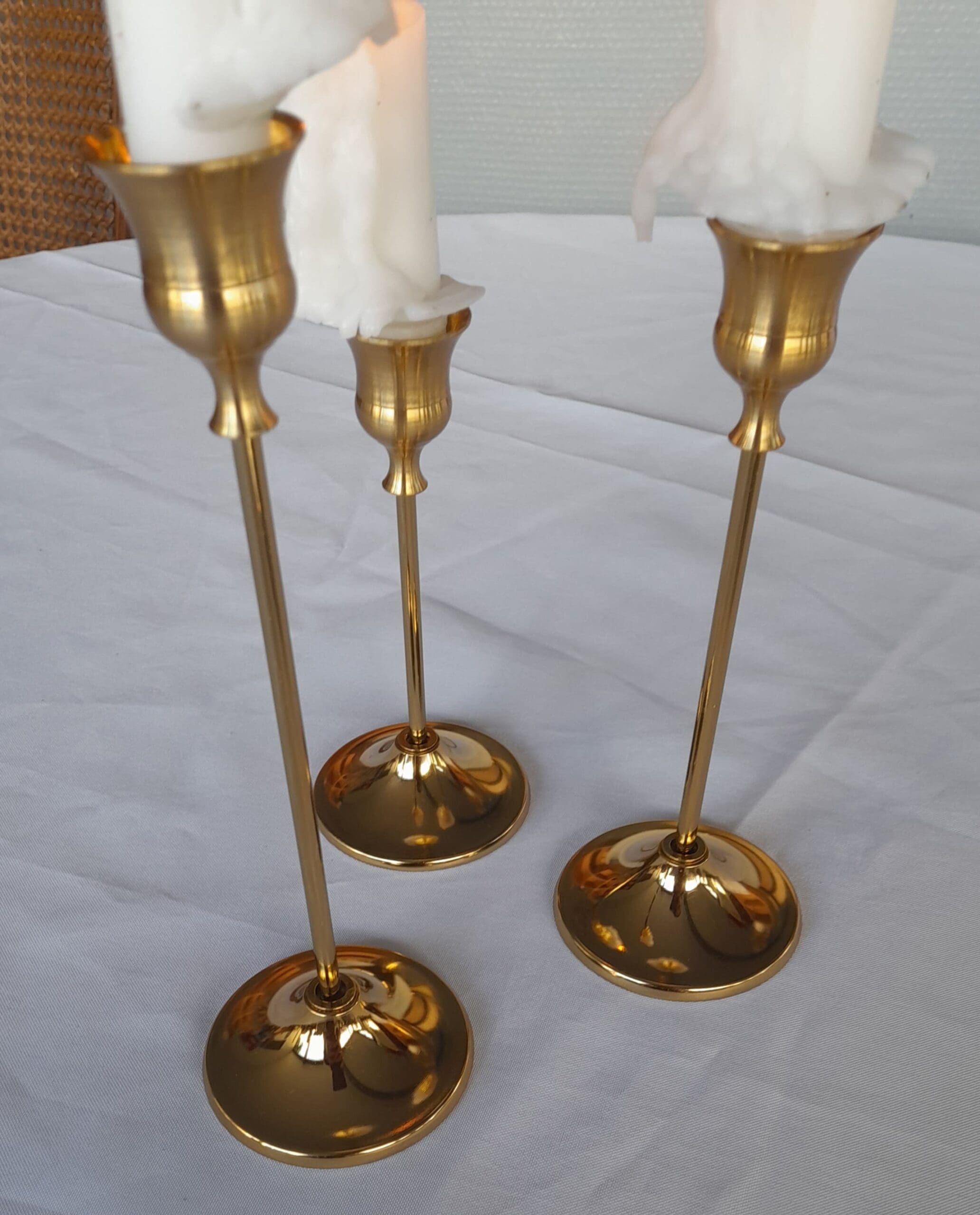 Bougeoirs or sur pied 3 tailles différentes disponible en location prix indiqué pour 1 lot 3 pièces sur ube location pour 2 jour installation et démontage non inclus