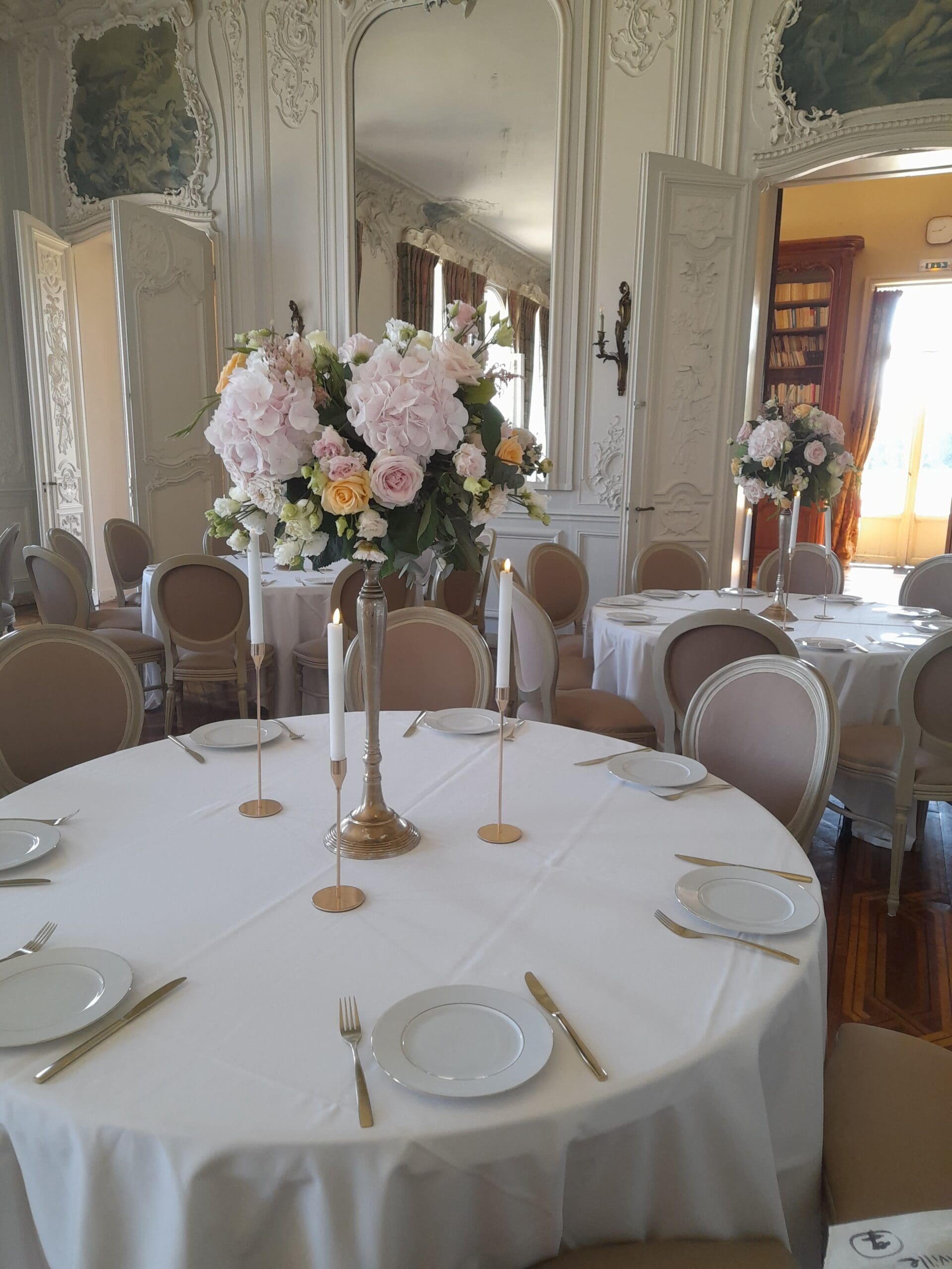 Fin et élégant ces bougeoirs or donneront à votre table chic et simplicité,  prix indiqué pour une location par trois pièces sur deux jours , 50 pour cent du montant location par pièce sera appliqué par journée supplémentaire de location