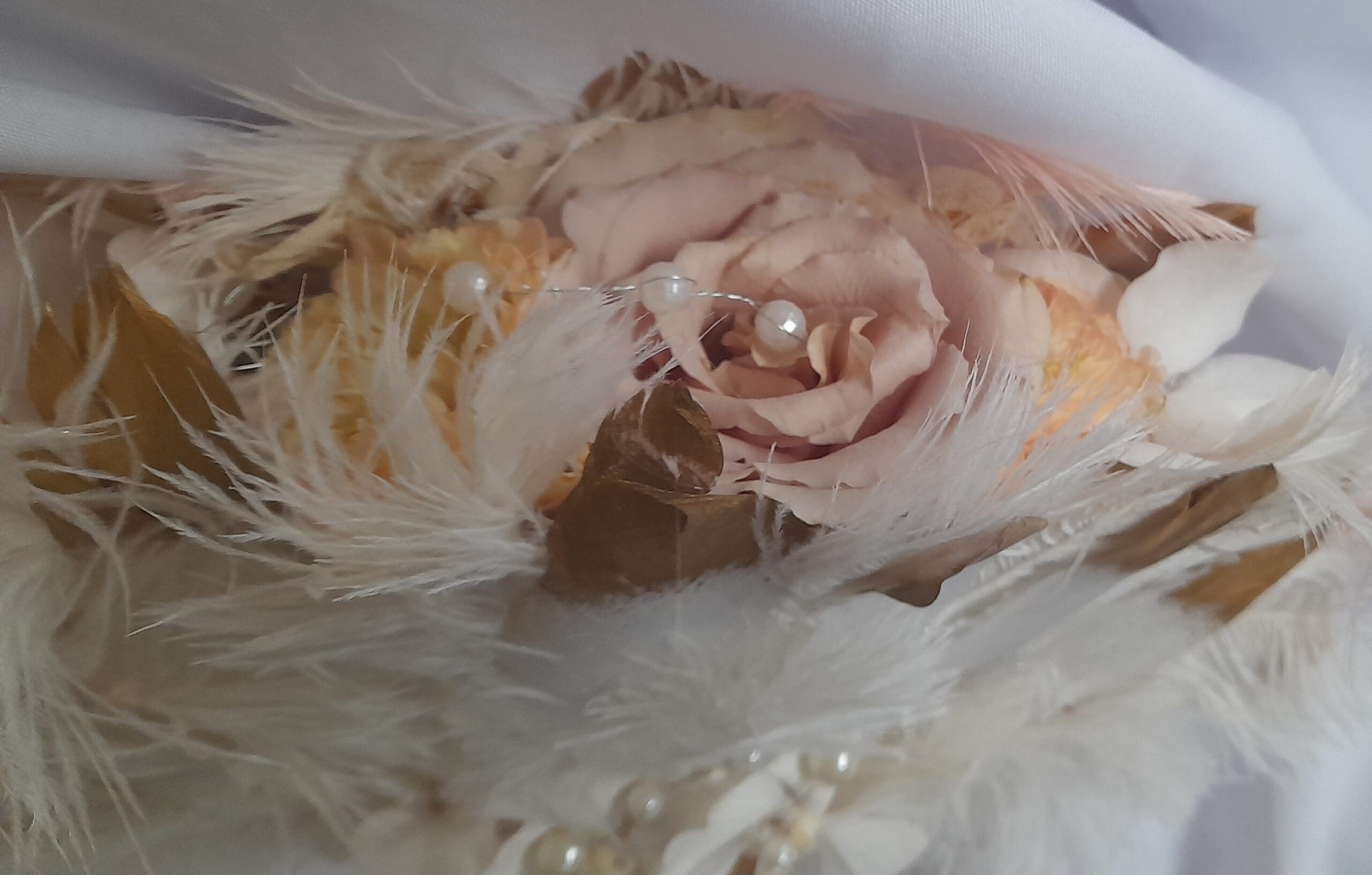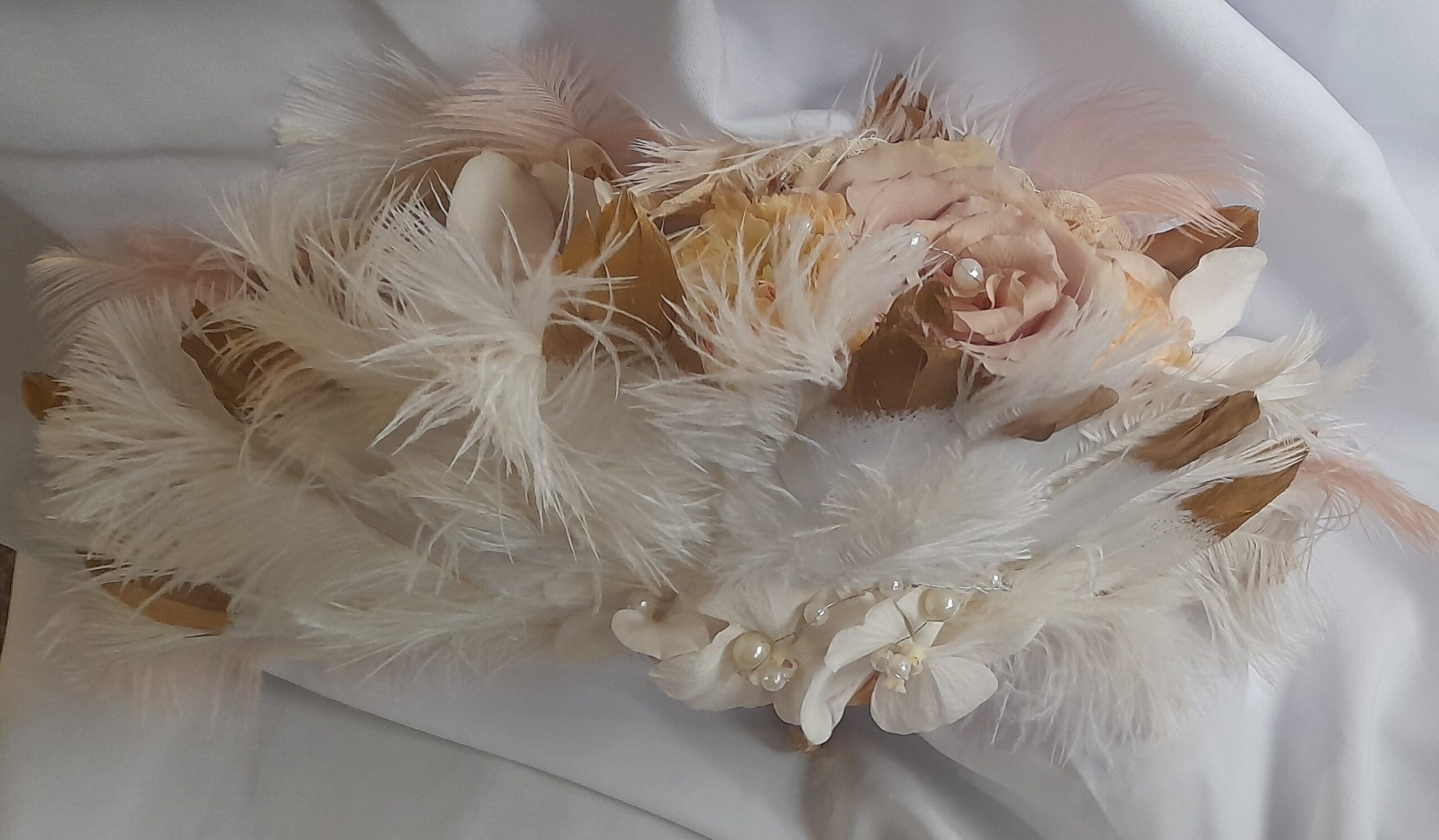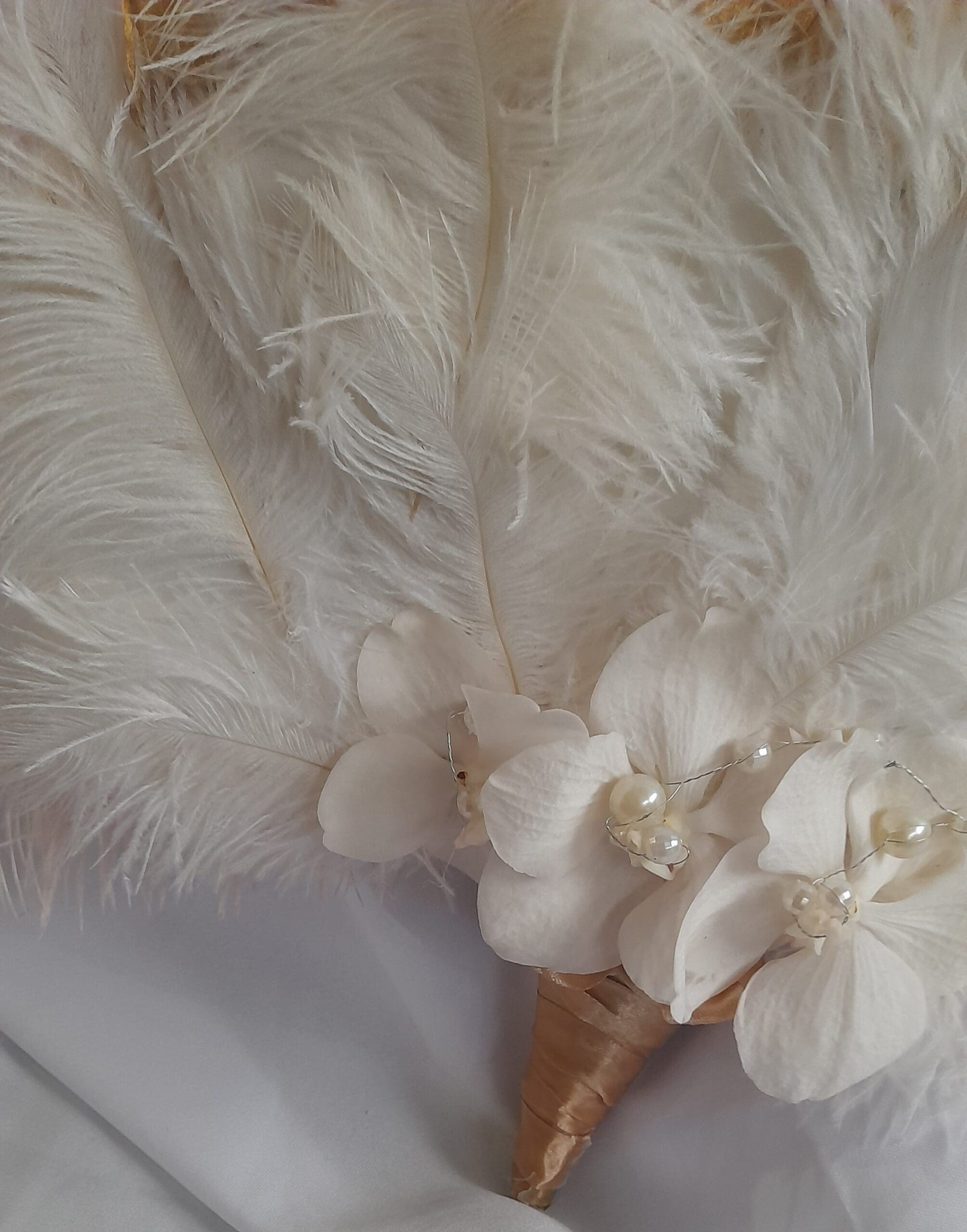 Magnifique création de bouquet éventail avec plume et fleurs naturelles