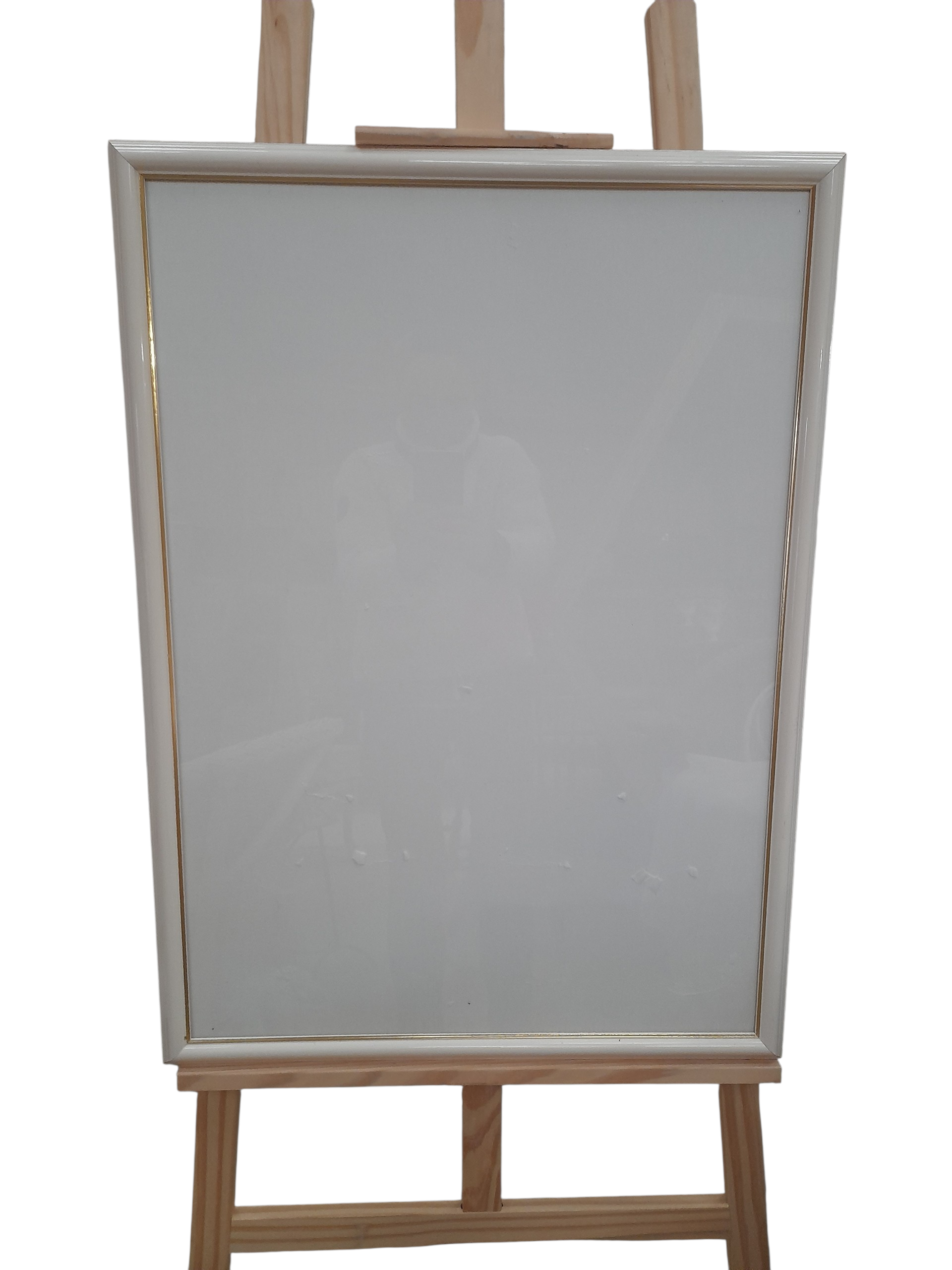 Joli cadre blanc cassé avec liseret doré idéal pour plan de table ou photographie ; dimensions : 54cm de largeur et 74cm de hauteur ; dimension intérieure : 49cm et 69cm de hauteur ; prix indiqué pour une location sur deux jours ; chevalet de différentes modèles également disponible en location ; 50 pour cent du montant location sera appliqué par journée supplémentaire ;