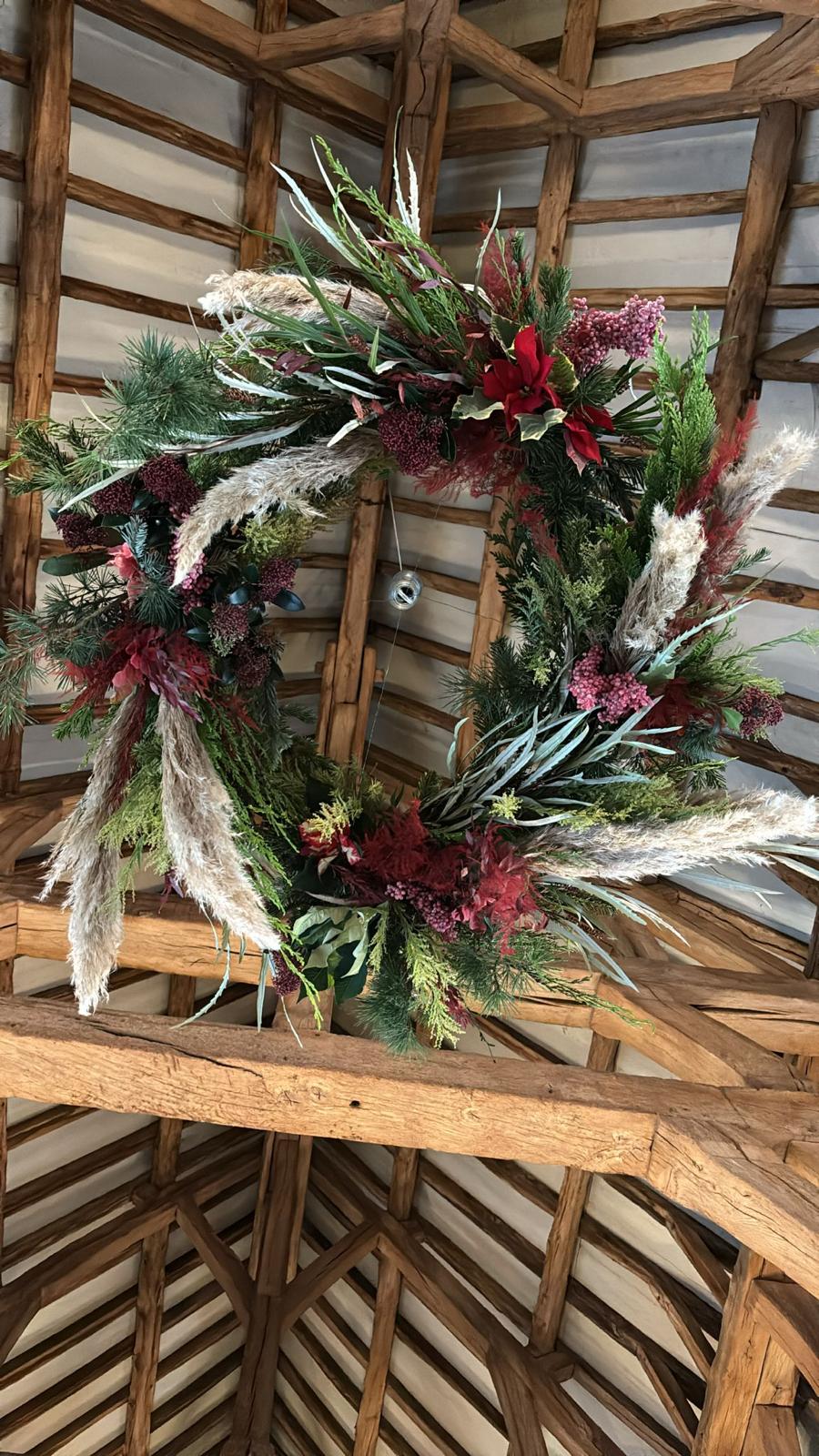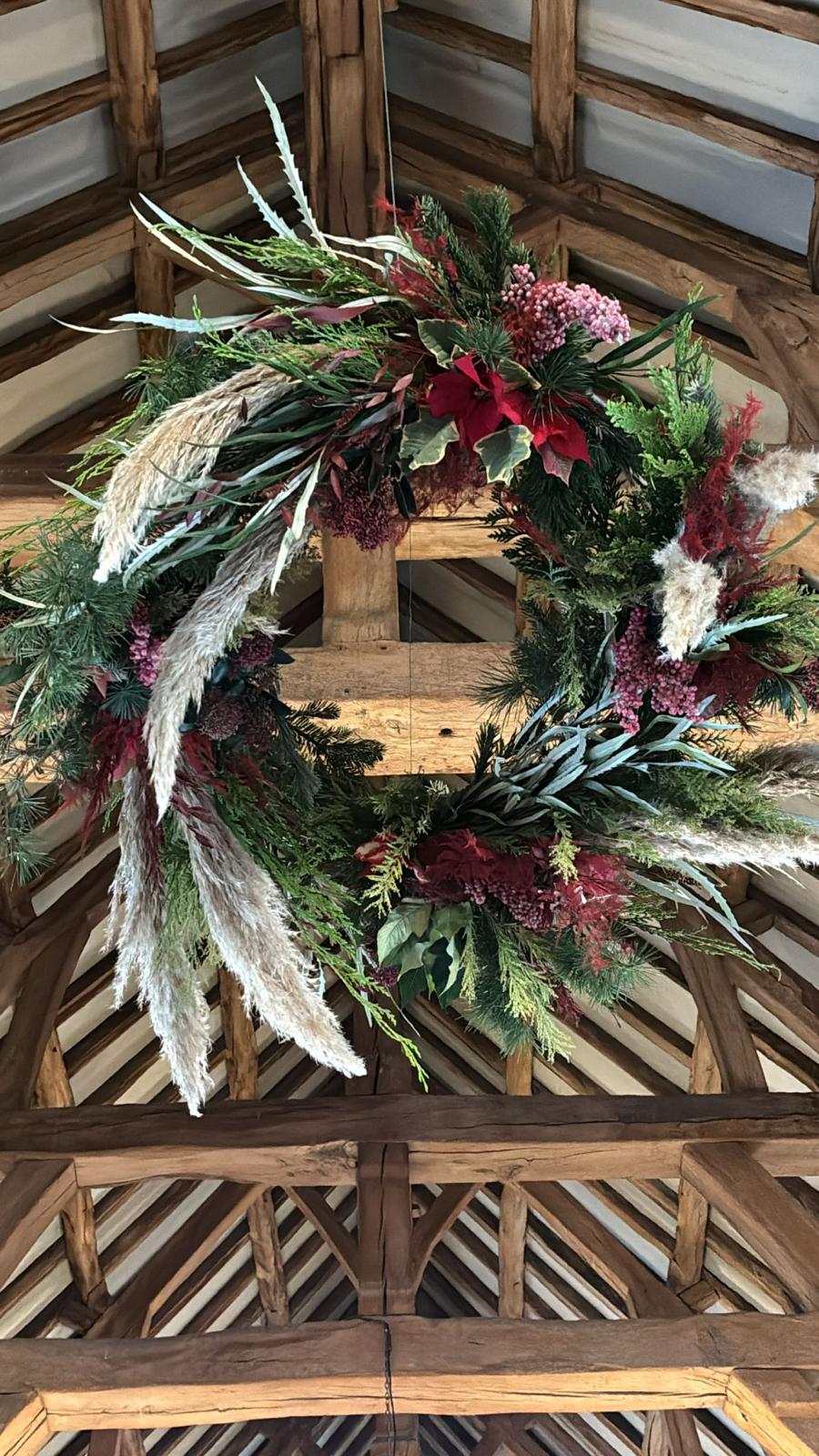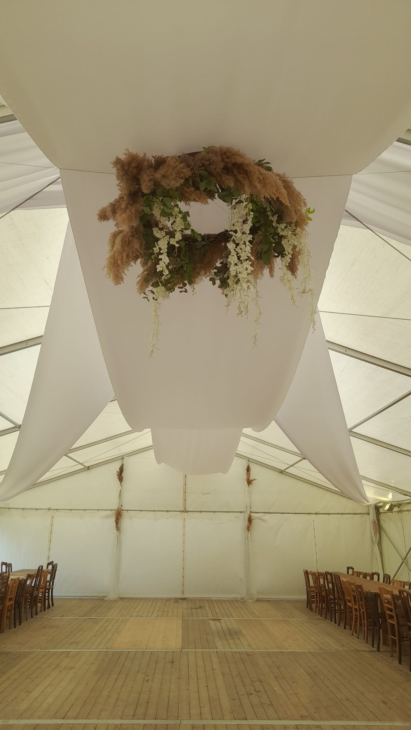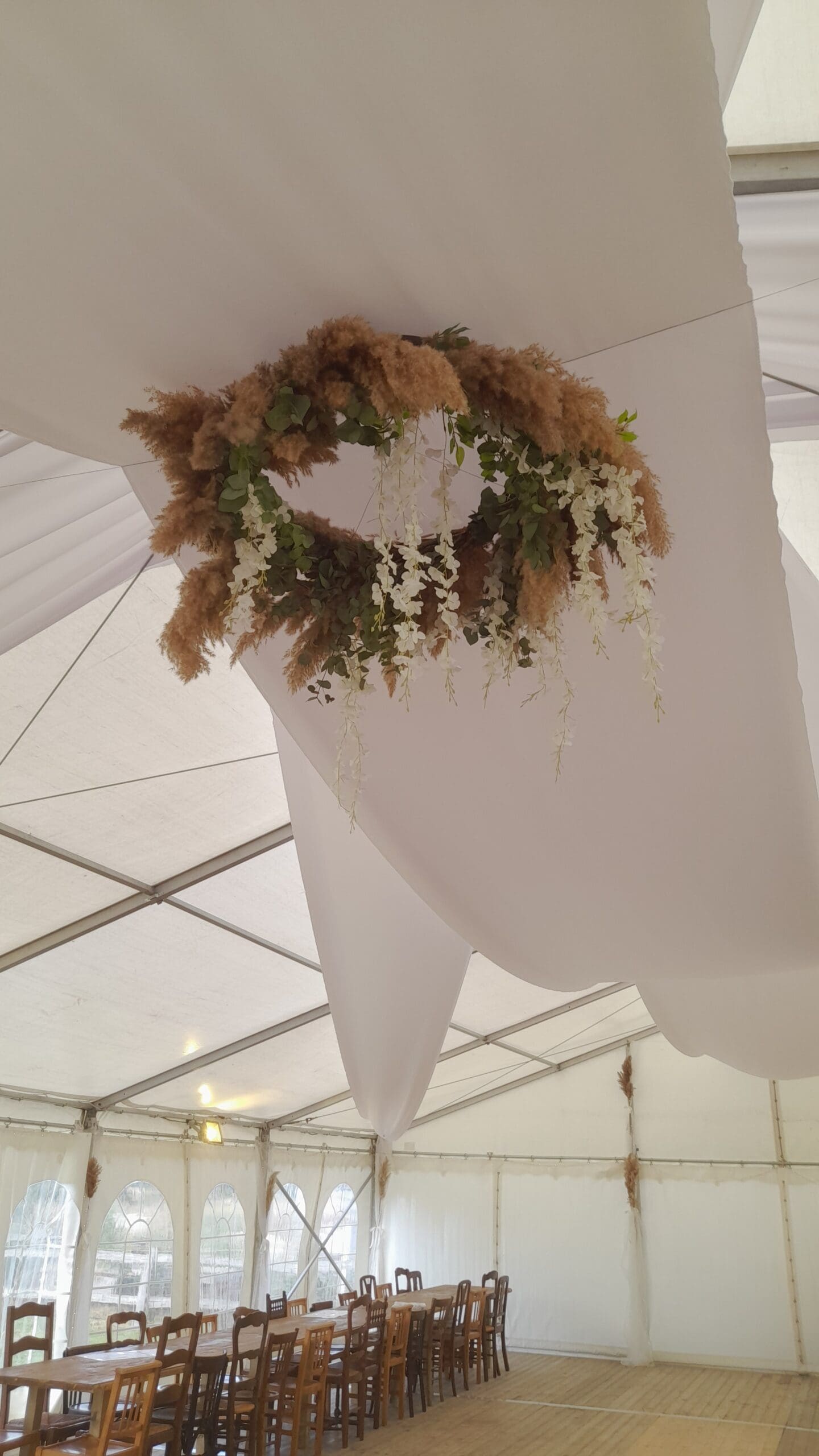 Grande couronne de fleurs a suspendre dans votre salle de réception, réalisable dans toutes les couleurs de votre mariage, réalisable a partir de 250€ , n’hésitez pas à nous consulter pour obtenir votre devis,