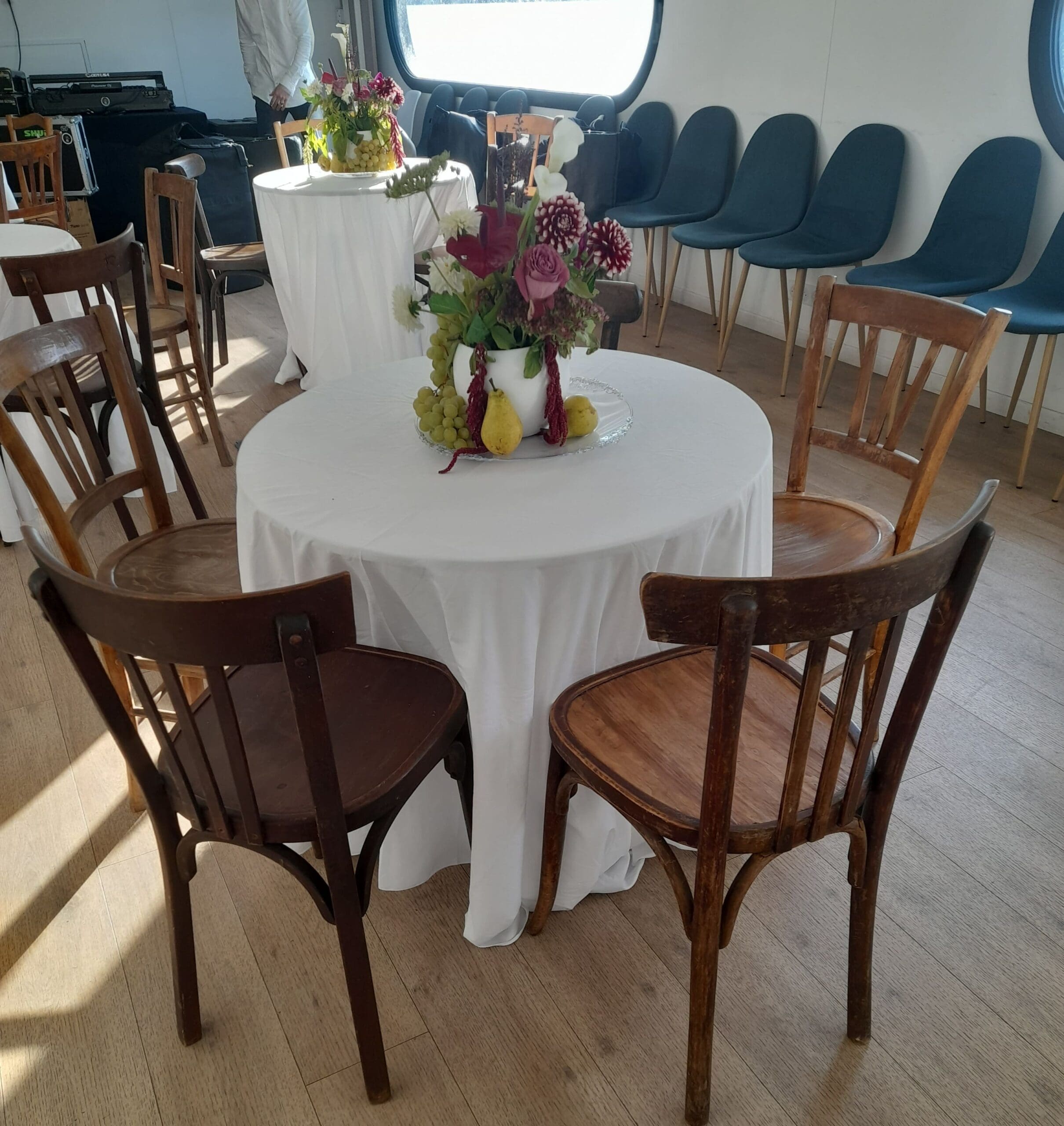 Magnifique table en bois naturel , plateau de 80cm pour 5 personnes, n’hésitez pas à nous consulter, prix indiqué par gueridon pour une location sur deux jours , location des chaises, décoration et livraison non inclus , n’hésitez pas à nous consulter pour obtenir votre devis personnalisé,50 pour cent du montant location par pièce sera appliqué par journée supplémentaire de location