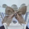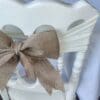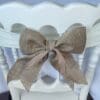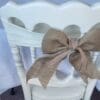 Joli noeud en jute naturel installer sur elastane champagne pour s’adapter a toutes les tailles de chaises en gardant un esprit naturel chic , prix indiqué pour une location sur deux jours installation et démontage non inclus, 50 pour cents du montant de location sera appliqué par jours supplémentaires