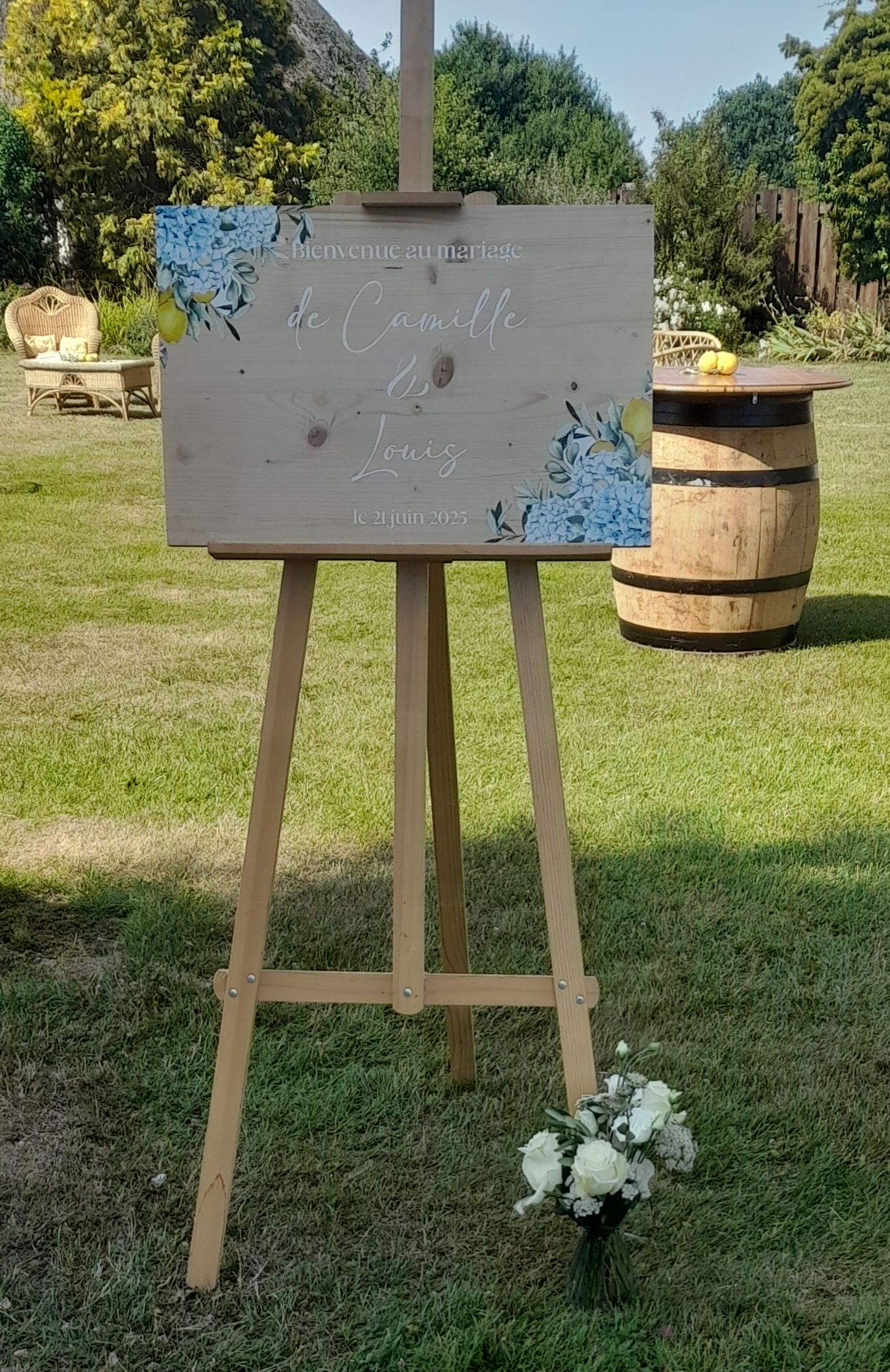 Joli panneau acceuil en bois avec ses motifs personnalisés, possibilité de le réaliser dans toute les couleurs de votre mariage,motifs et texte sur mesure en fonction de votre thème! Dimensions 60cm par 40cm ,