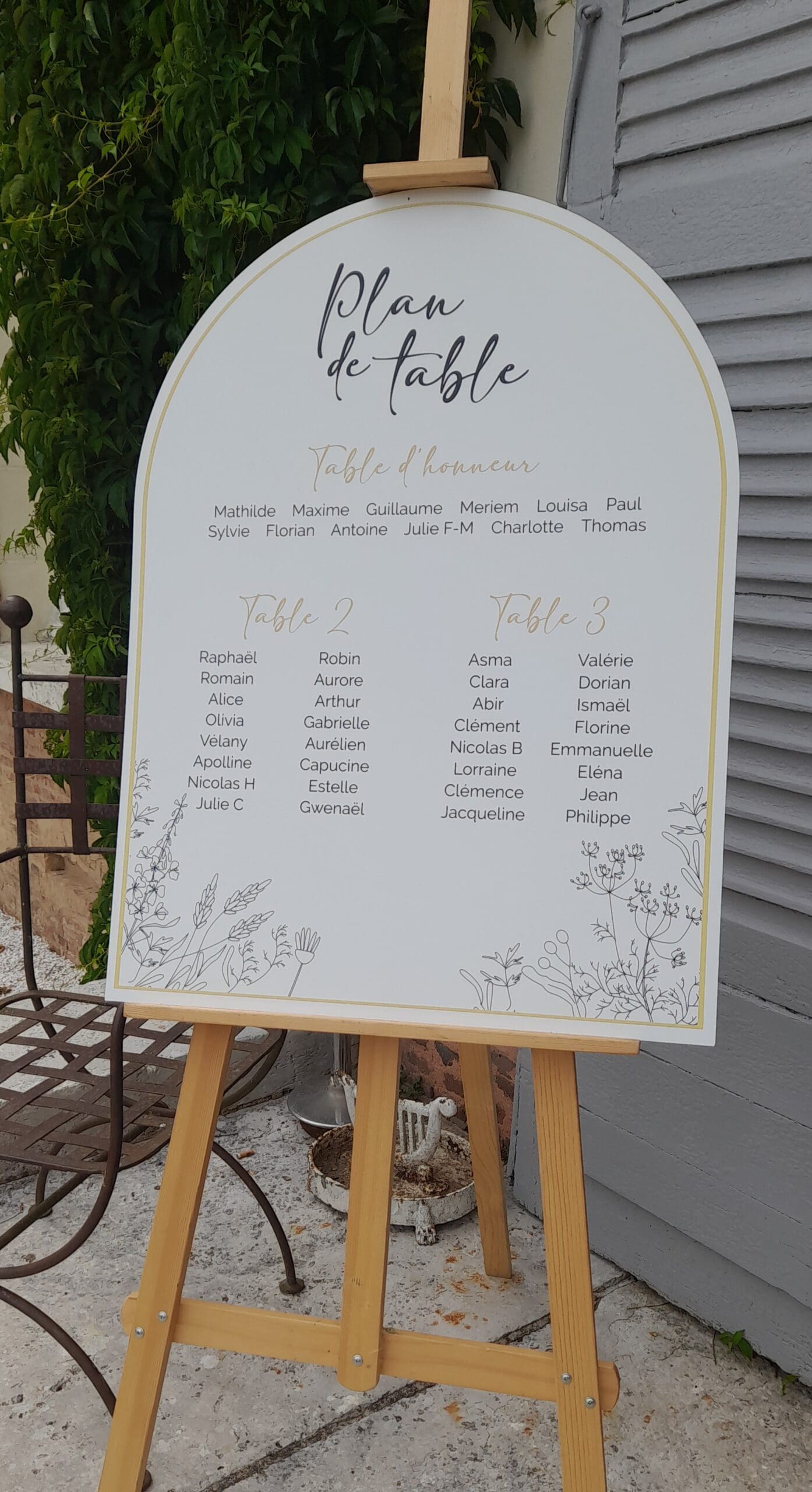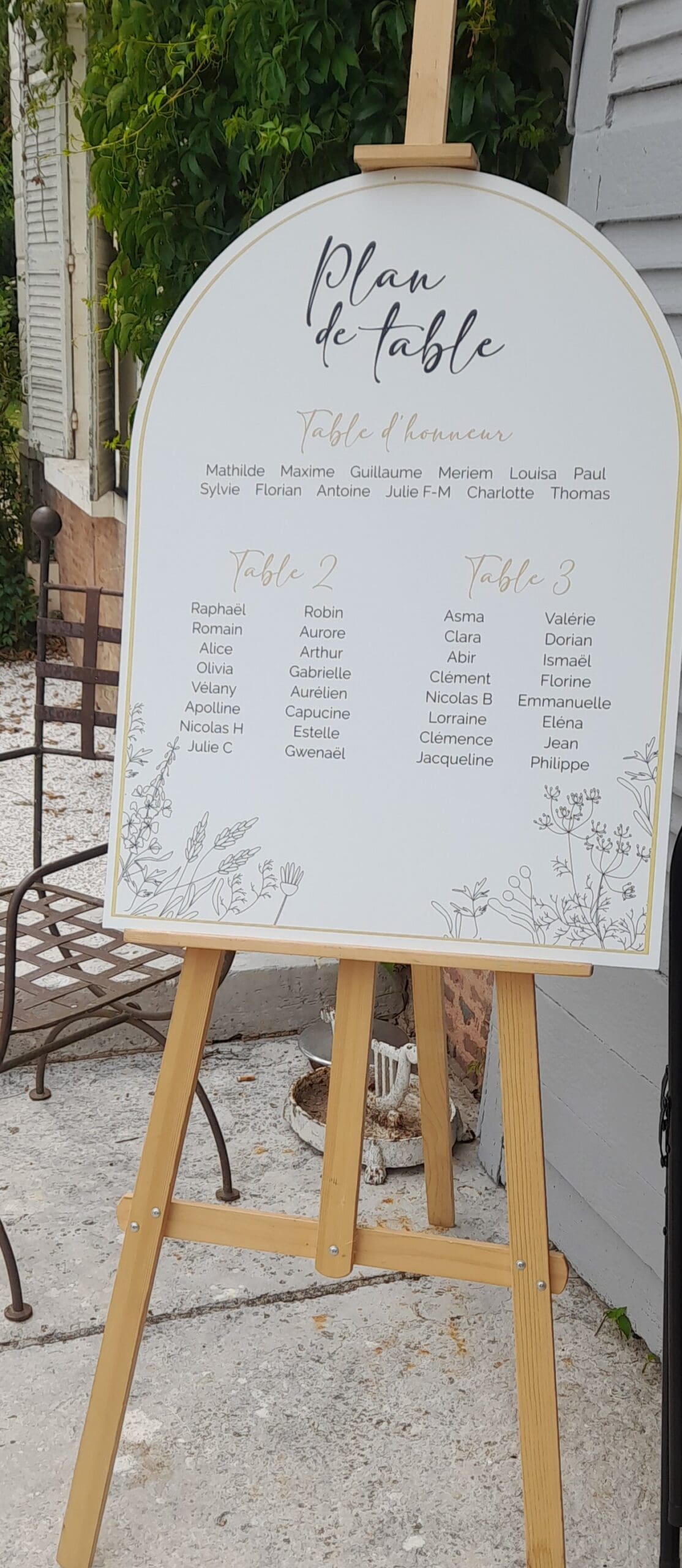 Panneau plan de table en plexiglass réalisé en arrondi pour un rendu moderne, possibilité de le réalisé dans toutes les couleurs de votre mariage et entièrement personnalisable ,