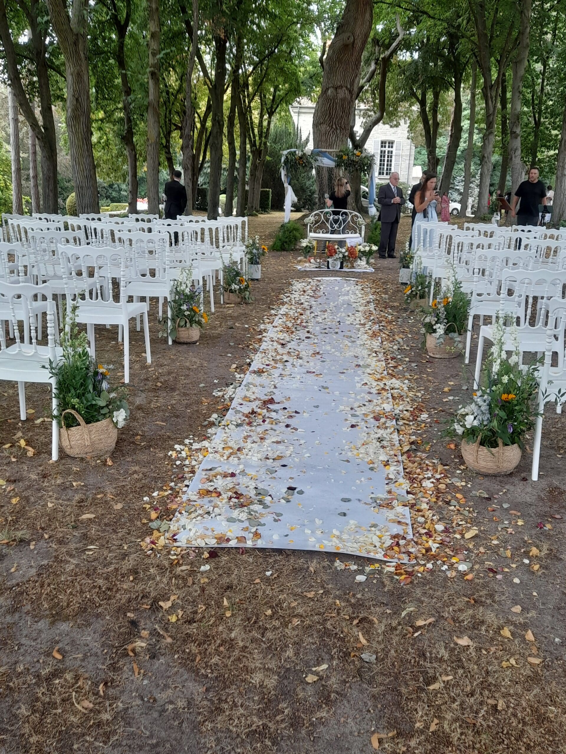 Tapis de cérémonie laïque dimensions 1 mettre de largeur sur 10 mètres de longueur, prix indiqué pour une location sur deux jours, installation et démontage non inclus