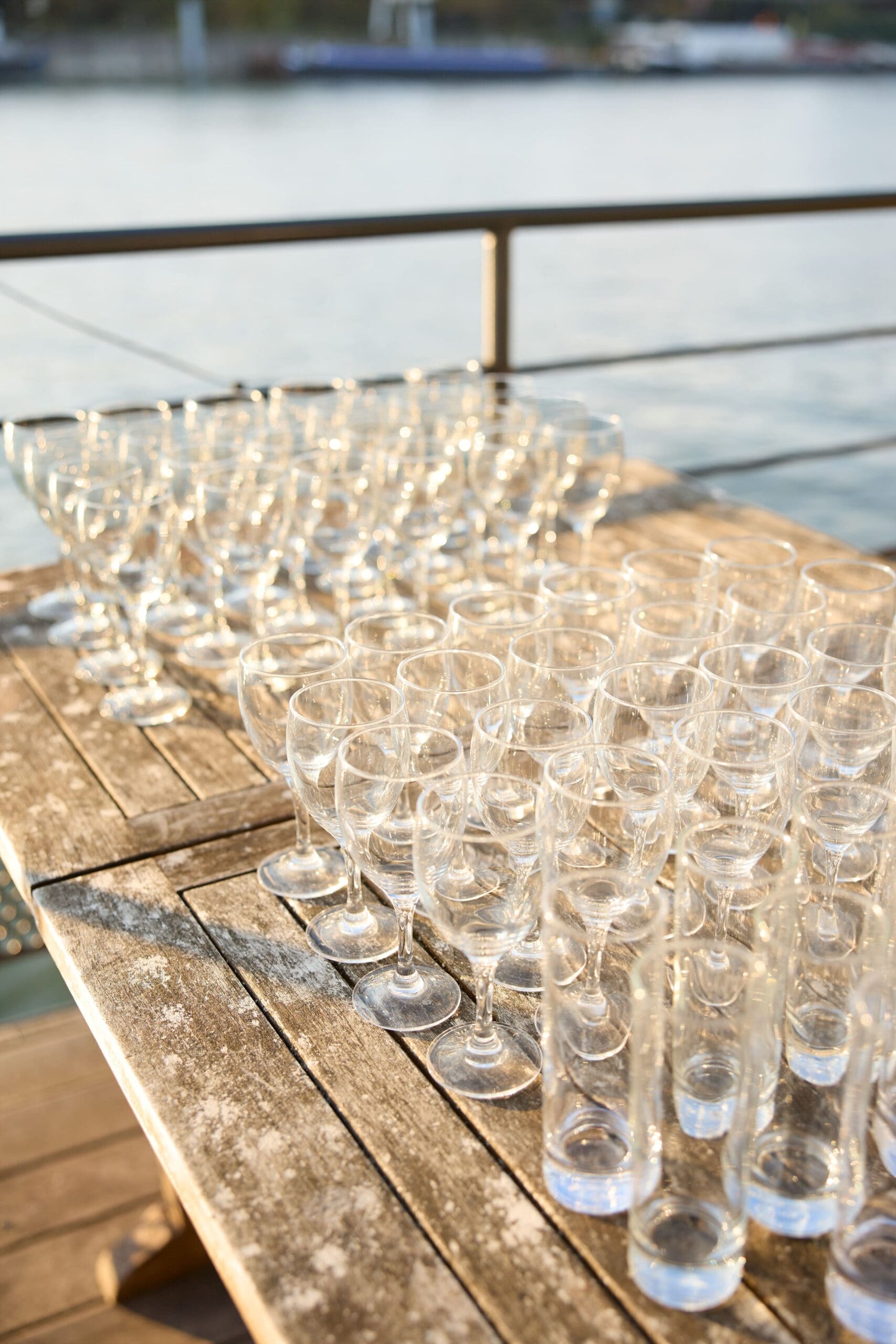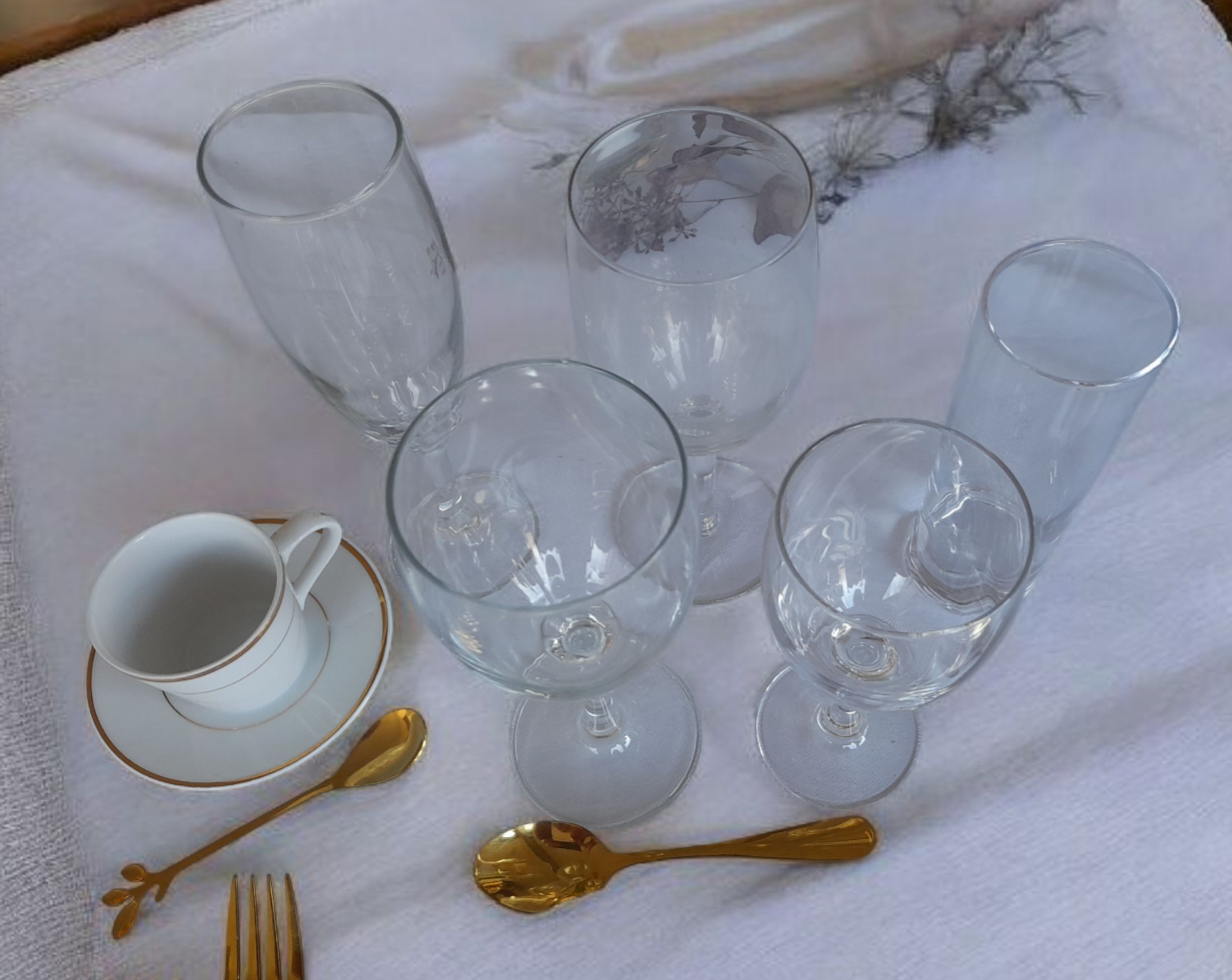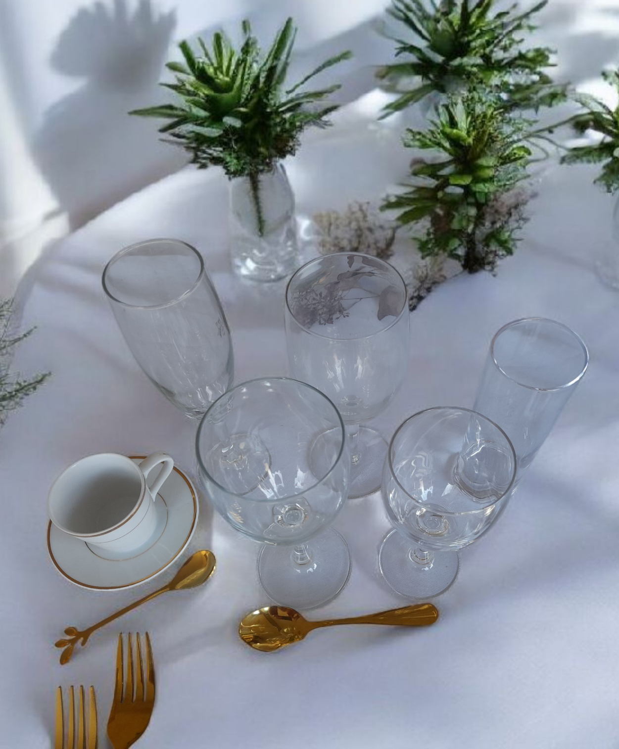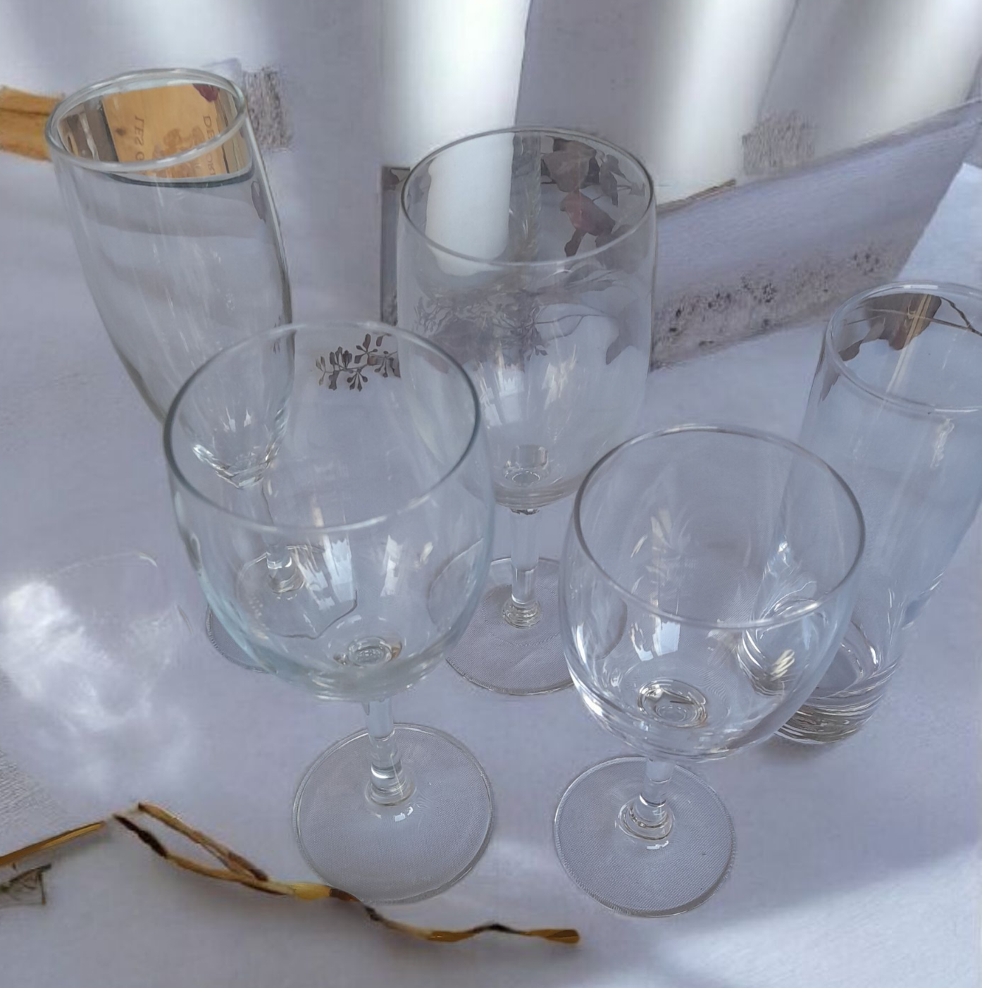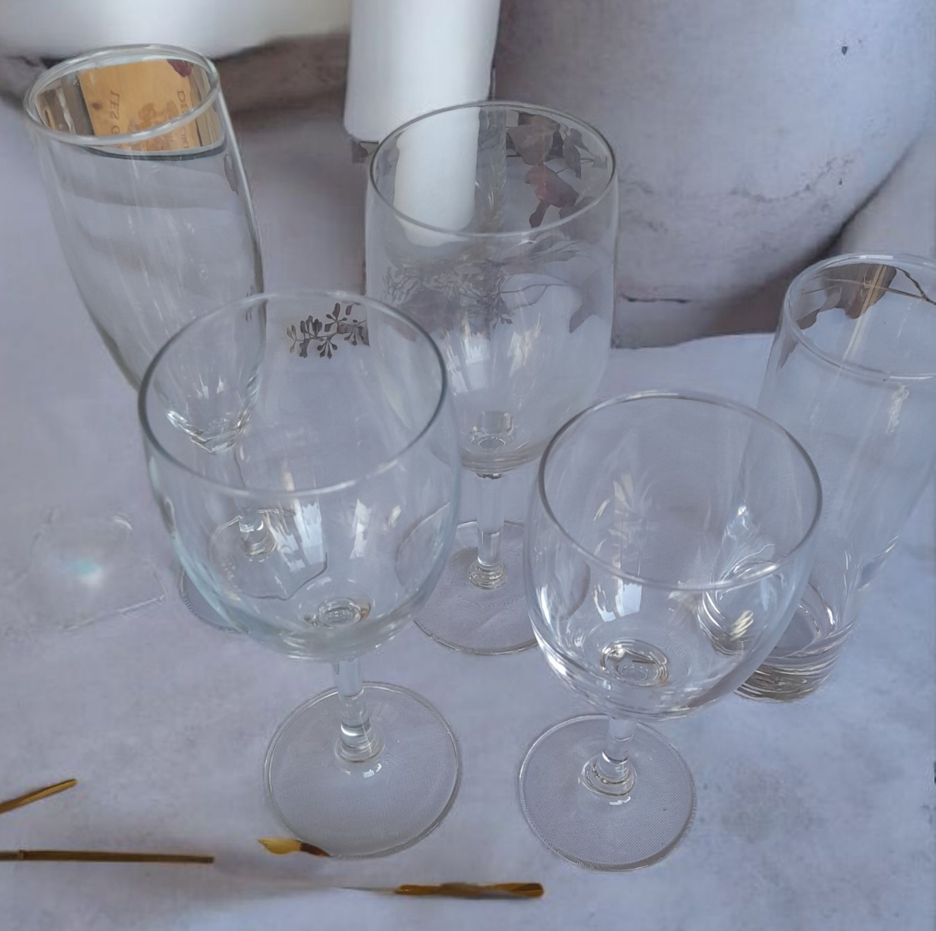 Nous proposons en location des verres à eau, à vin, flute à Champagne,  verre à cocktail, en dépareillées ou classique, prix indiqué par verre pour une location sur deux jours, 50 pour cent du montant location par pièce sera appliqué par journée supplémentaire de location